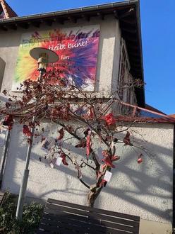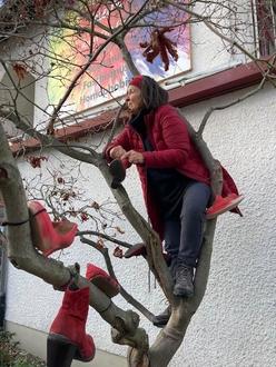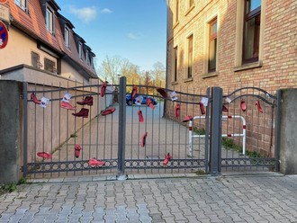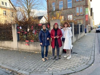 Dieses Jahr wird aus Energiegründen das Rathaus leider nicht angestrahlt werden können. Aber wir werden für jedermensch sichtbar in jedem Ortsteil einen „Schuhbaum“ bzw. „Schuhzaun“ gestalten. Mit den aufgehängten roten Schuhen wollen wir gegen Gewalt an Frauen und Mädchen protestieren, den Opfern gedenken und über Hilfsangebote informieren.