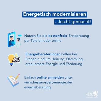 Die Beratungen werden vom Hessischen Wirtschaftsministerium finanziert und über das Netzwerk der LandesEnergieAgentur Hessen (LEA Hessen) organisiert: „Unsere Beratungen sorgen für mehr Energieeffizienz und zeigen, was am eigenen Haus energetisch verbessert werden kann. Ob zum Beispiel ein Austausch der Fenster, eine Dämmung der obersten Geschossdecke oder eine umfassende Modernisierung sinnvoll sind, was Maßnahmen kosten und wie schnell sie sich rechnen“, erklärt Dr. Karsten McGovern, Geschäftsführer der LEA Hessen.