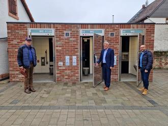 Bürgermeister Marcus Merkel freut sich über die gelungene Projektumsetzung: "Die Anlage steht zentral und ist barrierefrei nutzbar. Das ist besonders bei Festen im Ortskern im wahrsten Sinne des Wortes auch eine „Erleichterung“. Hoffentlich bleibt sie uns lange erhalten und von Vandalismus verschont.