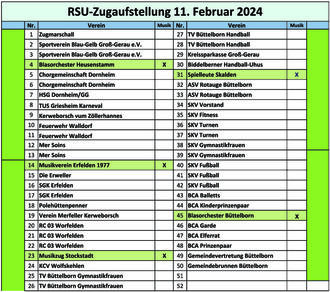 Wir hoffen, mit der Verpflichtung des Reinigungsdienstes, der Aufstellung von DIXIs im Bereich der Zugaufstellung und im Bereich der Mainzer Straße – Ecke Gässelweg und Rathausplatz, dem Einsatz des Bauhofs, des Ordnungsamts, der Einrichtung einer Hilfestelle durch Feuerwehr und DRK, der Verpflichtung von Zugordnern sowie Umleitung des öffentlichen Personennahverkehrs, der Sperrung der Umzugsstraßen, einer umfassenden Polizeipräsenz in der Ortsmitte alle Maßnahmen zum Gelingen des Rosensonntagsumzuges 2024 getroffen zu haben.