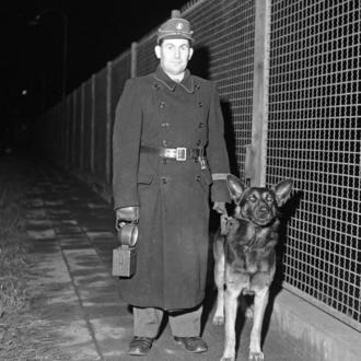Stets die Augen offen und ein wachsames Ohr, das waren wohl die Grundvoraussetzungen für den Wachmann jener Zeit. Auf einem Bild vom 17.11.1952 ist ein Wachmann vom Werksschutz der Glanzstofffabrik zu sehen. An seiner Seite, stets sein treuer Wachhund, der auf den Klangvollen Namen „Fero“ von Pfaffenaue hörte. Zur damaligen Zeit hatten die Werkseigenen Schutzmänner die Aufgabe, tagsüber die Mitarbeiter an den Eingangstoren zu kontrollieren und nachts das Werksgelände zu sichern. Diese Aufgabe erledigten sie wohl so gewissenhaft, dass kein größerer Einbruch oder Diebstahl während der gesamten Existenz der Fabrik bekannt ist. Im Übrigen hat die Security das schönen Wort Wachmann heute weitestgehend abgelöst. (Text/Bilder: Schönstein/Siebart)