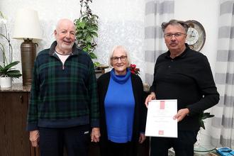 Bürgermeister Ockel (rechts) gratulierte Hans-Joachim (links) und Monika Selle (Mitte) zum Ehejubiläum.