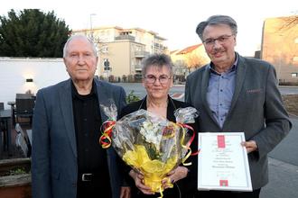 Bürgermeister Ockel (rechts) gratuloierte Henrika (Mitte) und Karl Heinz Schreiner (links) zum Ehejubiläum.