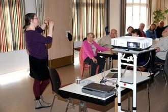 Medienpädagogin Magdalena Kneisel (l.) war im Seniorenclub zu Besuch.
