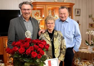 (vl.) Bürgermeister Manfred Ockel gratulierte dem Ehepaar Silvia und Hans Lichtwaldt zur Goldenen Hochzeit.