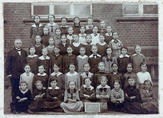 Ein Klassenfoto aus vergangenen Tagen. Leider ist über dieses Foto recht wenig bekannt. Ob es sich bei diesem Bild um eine Einschulung handelt, die bis zum Jahr 1966 immer nach den Osterferien stattfand, oder um ein Foto einer höheren Klasse, ist leider nicht überliefert. Zumindest gibt die Tafel mit der Jahreszahl 1917 Aufschluss darüber, wann das Foto aufgenommen wurde. Von daher sind der Fantasie und den Spekulationen über dieses Bild keine Grenzen gesetzt. Vielleicht erkennt jemand seine Eltern oder Großeltern auf dem Klassenfoto aus der Bürgermeister-Hardt-Schule und kann ein wenig Licht ins Dunkel bringen. (Text/Bild: cs/Stadtarchiv)