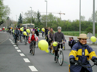 Es war der 1.April.2002, da wurde dieses Bild „geschossen“. Nun kann man sich jetzt mehr oder weniger zurecht die Frage stellen, was denn an diesem Bild so besonders sein soll. Und in der Tat, der Anlass oder das Motiv kommen hier nicht in Frage. Was dieses Bild aber für die Rubrik „Zu schade fürs Archiv“ prädestiniert, ist die Tatsache, dass just an diesem Tag die digitale Fotografie beim Presseamt der Stadt Kelsterbach Einzug gehalten hat. Dies war also das erste digitale Foto und löste die bis dato genutzte analoge Fotografie im Rathaus ab. Im Übrigen kam zu jener Zeit eine Nikon Coolpix 995 zum Einsatz, mit einer zur damaligen Zeit extrem hohen Auflösung von 3,3 Megapixeln. Das Bild zeigt eine an diesem Tag stattfindende Fahrradsternfahrt zum Frankfurter Flughafen, um gegen den weiteren Ausbau und gegen Fluglärm zu protestieren. Diesem Aufruf folgten damals über 200 Radler. (cs)