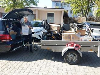 Besonders eindrucksvoll war folgende Spende: Ein Rollstuhl mit Kopfstütze, ergänzt durch eine passende Gehhilfe. Ebenso wurden zahlreiche medizinische Produkte gespendet, darunter Betteinlagen und Windeln für Senioren. Daneben kamen auch zahlreiche Werkzeuge zusammen – Spaten, Schaufeln, Bohrer, Akkuschrauber und diverses Kleinhandwerkszeug –, die in den zerstörten Gebieten dringend gebraucht werden, um Häuser zu sichern, wiederaufzubauen und notdürftige Reparaturen vorzunehmen.