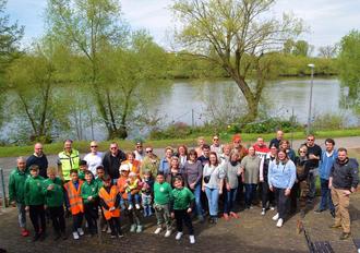 Am Samstag trafen sich bei bestem Wetter viele Helfer, um die Stadt und ausgewählte Naherholungsbereiche von Müll zu reinigen. Mit dabei auch Bürgermeister Manfred Ockel (links im Bild). Foto: (sb)