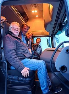 Nach der Lesung drehten (vlnr.) Reinhold Zühlke, Bürgermeister Manfred Ockel, Christian Reschke und Klaus Baumeister eine Runde in der Zugmaschine.