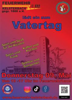 Die Feuerwehr Kelsterbach lädt am 09. Mai ab 10 Uhr, wieder zu ihrem alljährlichen Event zum Vatertag ein. Für das leibliche Wohl ist bestens gesorgt. Dieses Jahr erwartet die Besucher unter anderem Würstchen und Steaks vom Grill sowie Erbsensuppe und Pommes. Nachmittags stehen dann Kaffee und ein vielfältiges Angebot an Kuchen bereit. Auch der Spaß für die kleinen Gäste kommt mit einer Hüpfburg und einem Sandplatz bei dem gebuddelt und gespielt werden kann, nicht zu kurz. Es wird auch ein Löschfahrzeug bereitstehen das sowohl von Groß als auch Klein besichtigt werden kann. Das alles wird mit guter Musik und hoffentlich schönen Wetter umrahmt.