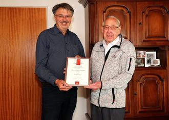 Bürgermeister Manfred Ockel (l) überbrachte Heinrich Schultheis Glückwünsche im Namen der Stadt.