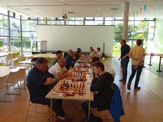 Jedes Team hat an 4 Brettern weiß, an 4 Brettern schwarz. Wir verloren am Sonntag alle Spiele, in denen wir die schwarzen Figuren hatten (Bretter 1, 3, 5, 7), sowie eine Partie mit Weiß.