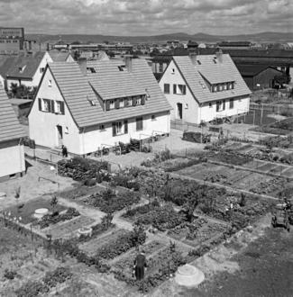 Anfang der 1950er Jahre, wurde die Dr.-Hans-Jordan-Straße angelegt. Namensgeber war der Unternehmer Hans Jordan, der seiner Zeit Vorstandsmitglied der damaligen Vereinigten Glanzstofffabriken im Stammwerk in Wuppertal-Ebersfelde war. Im Zuge dessen, wurden zahlreiche kleinere und größere Wohnhäuser in diesem Bereich von der „Glanzstoff“, der späteren Enka, gebaut. Umgangssprachlich redete man von den „Glanzstoffhäusern“. Diese waren sehr begehrt, boten sie doch für kleines Geld eine optimale Unterbringung. Die Wohnungen waren neu, nicht weit von der Fabrik entfernt und jede Wohneinheit hatte eine kleine Gartenparzelle zur Selbstversorgung. Auf dem Bild vom 2. August 1953 sieht man die idyllisch anmutenden Gärten von zwei Vierfamilienhäusern. Wie so oft hat alles nun mal seine Zeit und ab dem Jahr 2008, mussten nach und nach die, in die Jahre gekommenen, Häuser modernen Wohnungen platzmachen. (Text/Bild: Schönstein/Stadtarchiv)
