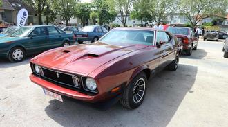 Prachtstück: Ein Ford Mustang in Weinrot, Baujahr 1973.
