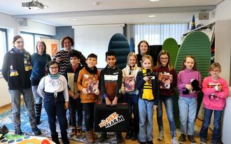 Von den zehn teilnehmenden Kindern im Alter von acht bis 13 Jahren hatten bereits sieben Podcast-Erfahrung, nur für drei von ihnen war dies eine Premiere vor dem Mikrofon. Das Planen der einzelnen Teile dieser neuen Folge, das Vorlesen der Lieblingsstellen sowie die technischen Aspekte machten großen Spaß, so die einhellige Meinung unter den Kindern. Trotzdem gaben einige, die bereits bei früheren „Bücheralarm“-Folgen mitgemacht hatten, zu, dass sie die fertigen Podcasts nie angehört hätten, da sie es nicht mögen, die eigene Stimme zu hören. „Umso schöner, dass Euch das nicht davon abgehalten hat, wieder mitzumachen“, so Bibliotheksleiterin Meike Betzold zu der aus drei Jungs und sieben Mädchen bestehenden Gruppe.