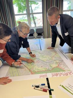 Während des Akteurstreffens erarbeiteten Gruppen mögliche Potentiale für ein Wärmenetz in verschiedenen Stadtteilgebieten.