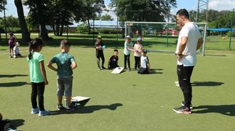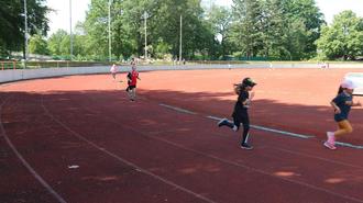 Die Kinder freuten sich über die frischen Snacks, denn die Sonne lachte vom hellblauem Himmel und ließ die Nachwuchssportler schon ordentlich schwitzen. In der Klasse 1b von Nevenka Sinkovec-Wolf machte die kleine Barbara den ersten Platz im 800-Meter-Lauf mit einer Zeit von 4:17 Minuten. Belohnt wurde die Anstrengung mit Seilspringen, Hula-Hoop- und Corn-Hole-Spielen an der Station der Caritas.