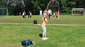 Am vergangenen Donnerstag war es dann wieder soweit und Mädchen und Jungen der ersten bis vierten Klassen konnten beim Sprint, 800 Meter-Lauf, Weitsprung und Weitwurf ihr Bestes geben. Zusätzlich bot Oliver Zwiers vom Tennisclub Schnupperstunden an und die Caritas hatte Wasserspiele und das Spiel Corn Hole aufgebaut. Auch Susanne Lock vom Freizeit- und Sportclub war wie in den letzten Jahren wieder als ehrenamtliche Helferin vor Ort. Ebenso viele Eltern, die einerseits bei den Sportstationen aushalfen und andererseits ein leckeres Obstbuffet mit Wassermelone, Äpfeln oder auch Bananen organisiert hatten, waren dabei.