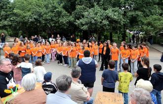 Der Schulchor sang “Unsere Schule feiert heute“, begleitet von Musikschulleiter Marc Fischer am Akkordeon (nicht im Bild)