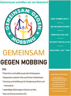 Ein erster Schritt zur besseren Sichtbarkeit war eine gelungene Auftaktveranstaltung des Netzwerks im vergangenen September, bei der über 50 Interessierte zu einem Vortrag des selbst viele Jahre von Mobbing betroffenen Autors Norman Wolf gekommen waren. Danach gab es an den Schulen und der Kita verschiedene Aktionen und Projekttage zu dem Thema, die auch in Zukunft regelmäßig stattfinden sollen.