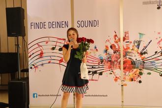 Am Freitag, 2. Juni, fand das Schülerkonzert der Gesangsklasse von Krista Ndoja im Fritz-Treutel-Haus statt. Zwölf junge Sängerinnen füllten den Hessensaal mit ihren Stimmen. Auf dem Programm standen Pop-Hits von Adele und Alicia Keys, aber auch Songs aus den Filmen „Vaiana“ oder „Bibi und Tina“. In der zweiten Hälfte wurde das Pop-Programm durch ein Chanson von Édith Piaf bereichert. Bei „La vie en rose“ überreichte die Sängerin Daria Luic Rosen als Dankeschön an ihre Lehrerin Krista Ndoja. Dieses Dankeschön griff Musikschulleiter Marc Fischer in seiner Verabschiedung auf und bedankte sich bei den Schülerinnen, bei Ndoja und beim Publikum.