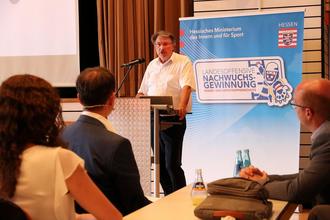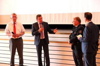 Das Thema Nachwuchsgewinnung war zentral bei einer Podiumsdiskussion, an der Staatssekretär Sauer, DRK-Präsident Södler und Feuerwehrverbandspräsident Fischer teilnahmen. Fischer machte darauf aufmerksam, dass sich die Menschen oftmals nicht mehr langfristig im Ehrenamt binden, sondern lieber zeitlich befristete Projekte machen wollten. Angesichts dessen müssten die Feuerwehren deutlich machen, welche Möglichkeiten es gebe, sich zu engagieren, denn es sei für jeden etwas dabei. Über 41.000 Kinder und Jugendliche gehörten den Kinder- und Jugendfeuerwehren Hessens an. Und dabei sei die Tendenz steigend, weil dort hervorragende Arbeit gemacht werde. Auch die Möglichkeit, ein freiwilliges soziales Jahr (FSJ) bei der Feuerwehr abzuleisten, sei ein Erfolgsmodell, denn viele FSJler blieben den Feuerwehren anschließend erhalten. Anerkennung und Wertschätzung sei ein ganz wichtiger Punkt, fuhr Fischer fort und lobte die Anerkennungsprämien, die bereits ab zehn Jahren Mitgliedschaft in der Feuerwehr ausgezahlt würden. Ein weiteres probates Mittel seien Vergünstigungen, wie zum Beispiel freier Eintritt in Schwimmbädern, oder Hilfe durch die Kommune bei der Kitaplatzsuche und Unterstützung bei der Freistellung durch den Arbeitgeber. Die Einführung einer Feuerwehrrente sei ein schwieriges Thema, das vom Feuerwehrverband auf Bundesebene diskutiert werde, meinte Fischer.