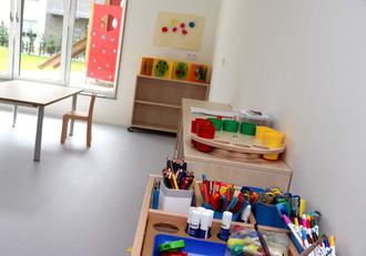 In den Gruppenräumen sowie sechs größeren und vier kleineren Funktionsräumen können zukünftig bis zu 137 Kinder, aufgeteilt in fünf Gruppen und eine Krippengruppe, nach ihren individuellen Bedürfnissen betreut werden und sich frei entfalten. Dabei werden Sprache und motorische Kompetenzen ebenso gefördert wie kulturelles und soziales Lernen, Forschen, Experimentieren und mehr. Zudem steht ein weitläufiges Außengelände zur Verfügung. Dies kann im Moment zwar noch nicht genutzt werden, doch auch hier wird bald schon fröhliches Kinderlachen zu hören sein. (sb)