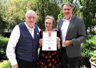 Bürgermeister Manfred Ockel (r) gratulierte Friedrich und Hilke Meisinger zum sechzigsten Hochzeitstag.