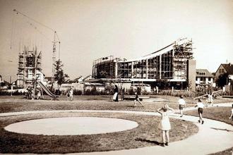 Über 60 Jahre ist es schon wieder her, dass die katholische St. Markuskirche gebaut wurde. Das Bild aus dem Jahre 1963 zeigt die noch im Bau befindliche Kirche nebst Glockenturm, der damals noch in den Kinderschuhen steckte. Was allerdings schon fertig und genutzt wurde, war der dazugehörige Kindergarten. Die Spielgeräte zu jener Zeit waren eher einfacher Natur, was dem Anschein nach aber wohl völlig ausreichend für die Kinder in dieser Zeit war. Beaufsichtigt wurden die Kleinen damals noch von den wachsamen Augen einer Schwester. (Text/Bild: cs/Stadtarchiv Kelsterbach)