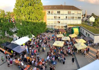 Neben einer zum Abend aufkommenden leichten Brise sorgten auch zahlreiche Kaltgetränke für Abkühlung der Gäste. Neben dem namensgebenden Apfelwein gab es auch verschiedene Softdrinks, Mispelchen oder „Äpplerol-Spritz“ im Angebot. Gegen den Hunger halfen Bratwurst, Steak, Handkäs und Spundekäs. All das wurde von dem engagierten Team stets mit einem Lächeln oder einem kurzen Plausch serviert. Für die jungen Festbesucher wurde ebenfalls etwas geboten. Eine Hüpfburg, Glitzertattoos und Planschbecken sorgten dafür, dass neben Musik und Stimmengewirr auch herzliches Kinderlachen über den Platz schallte.