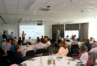 Nach der kurzen Vorstellung des Vienna House begann der Bürgermeister mit einer Präsentation zu Themen, die für die Stadtentwicklung und das ansässige Gewerbe in den kommenden Jahren von Bedeutung sein werden. Maximilian Barth, Klimaschutzbeauftragter der Stadt Kelsterbach, und Heiko Langelotz, Projektingenieur Nachhaltigkeit, stellten kurz den aktuellen Stand der Kommunalen Wärmeplanung vor. Bis 2028 muss flächendeckend für die Stadt eine Wärmeplanung erstellt werden, bei der klimaneutrale Energien fossile Energien ersetzen. Dies betreffe Hauseigentümer genauso wie das Gewerbe, erklärte Barth. Eine Frage, die für die Kommunale Wärmeplanung zunächst geklärt werden müsse, sei, welche Potentiale es in Kelsterbach gibt, etwa die Nutzung von Abwärme von Rechenzentren oder eine Flusswärmepumpe, wie sie in Städten wie Mannheim bereits zum Einsatz kommt. Hier richtete Barth eine direkte Bitte an die Anwesenden: „Vielleicht haben Sie in Ihren Unternehmen Abwärmepotentiale, die wir noch gar nicht gefunden haben. Gerade jetzt bei der Bestandsaufnahme sind wir für solche Hinweise sehr dankbar.“