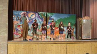 Professor Zauberkobel, alias Frederik Baldus, und seine Lebkuchenkinder, die (v.l.) von Lukas, Jan, Hasan, Helena, Amelie gespielt wurden.
