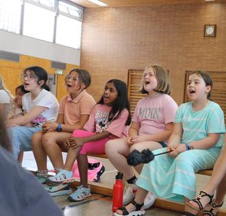 Auch Sara, Emily, Thivija, Thea und Luisa (v.l.) hatten Spaß und sangen beim Mitmachlied aus vollem Hals mit.