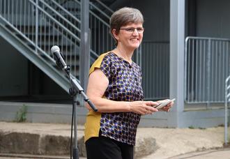 Sie habe sich gefragt, was man nach so einer langen Zeit sagen solle. Sie habe sich daher entschlossen, von dem Glück zu berichten, dass sie empfunden habe, als Lehrerin und Schulleiterin an einer Grundschule arbeiten zu dürfen. Viele hundert Schülerinnen und Schüler habe sie auf ihrem Weg begleiten und täglich das pralle Leben erleben dürfen. Kelsterbach sei ihr vor ihrer Zeit im Schuldienst nur durch die Nähe zum Flughafen ein Begriff gewesen, ansonsten war es ihr vollkommen unbekannt. Das habe sich inzwischen geändert und in den vier Jahrzehnten, die sie hier gearbeitet hat, habe sie die Stadt sehr zu schätzen gelernt.