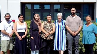 Das Team 5.4 (von links): Patrick Radziwill (Quartiersmanagement), Pinar Aksu (Mambino), Kevser Sempek-Banta Sali (Integration), Ayse Aydin (Mambino), Agneta Becker (Integration), Noureddine Bejjati (Teamleitung), Anna Brückner (Beratung).