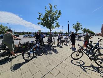 Einmal im Jahr befährt die CDU Kelsterbach mit dem Rad das Stadtgebiet, um einen Überblick über aktuelle Projekte zu bieten. Los ging es am Rathaus. CDU-Vorsitzender Frank Wiegand begrüßte die Teilnehmenden, bevor sich die Truppe auf den Weg machte.