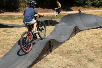 Der Pumptrack kann mit Fahrrädern, Tretrollern und vielem mehr befahren werden.