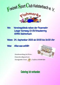 Die Planung für den nächten Flohmarkt auf dem FSC Gelände ist in vollem Gange. Bitte alle Interessenten um Anmeldung für einen Standplatz. (1 x Zeltgarnitur). Wir beabsichtigen 20-25 Stände für 5 Euro zu vergeben.