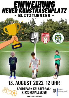 Die Stadt Kelsterbach hat im Sportpark einen neuen Kunstrasenplatz anlegen lassen, der am Samstag, 13. August, feierlich eröffnet wird. Die künftigen Nutzer des Platzes, die Fußballvereine BSC, Viktoria und Türk Kelsterbach, spielen ein kleines Turnier miteinander. Jeder Club tritt mit einer Herren-Mannschaft sowie mit einem aus E- und F-Jugend zusammengestellten Team an. Es wird über den halben Platz gespielt, die Begegnungen dauern je 20 Minuten. Da der Fairplay-Gedanke im Mittelpunkt steht, wird ohne Schiedsrichter gespielt.