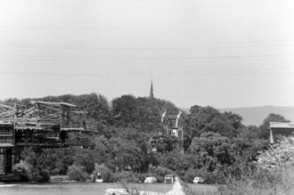 Lange war sie das Bindeglied zwischen Kelsterbach und Sindlingen. Gemeint ist die Fähre. Diese verrichtete bis in die 1970er Jahre hinein ihren Dienst, bis sie jäh das Ofer einer Karambolage auf dem Main wurde und sich die Reparatur nicht mehr lohnte. Da passte es ganz gut ins Bild, dass just zu dieser Zeit eine Autobrücke ein paar hundert Meter weiter in Planung war und schlussendlich auch gebaut wurde in Form der heutigen Sindlinger Mainbrücke, die die Bundesstraße 40 beherbergt. Das Bild ist aus dem Jahr 1977 und zeigt die Bauarbeiten an der noch nicht geschlossenen Brücke. Im Hintergrund ist im Übrigen die Villa Meister zu sehen, die wohl jedem, der über diese Brücke in Richtung Krifteler Dreieck fährt, vertraut sein dürfte. Fertiggestellt und für den Verkehr freigegeben wurde die Brücke 1979. (Text: cs / Foto: Erhard Stenzinger)