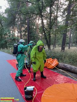 Bei unserem Übungsdienst am 09.08.2023 vergangene Woche, trainierten wir das Vorgehen bei einem Unfall mit gefährlichen Stoffen.