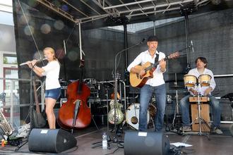Am vergangenen Sonntag hatte die Stadtverwaltung zur zweiten Auflage der „Matinee am Rathaus“ eingeladen und mehr als hundert Kelsterbacherinnen und Kelsterbacher nutzten die Gelegenheit, in entspannter Atmosphäre in den Sonntag zu starten. Dazu trug die Band Duo Doubletree - bestehend aus Ralf Olbrich und Yvonne Roth -, ergänzt um den Schlagzeuger und Perkussionist Thomas Wimmer, ihr Scherflein bei, indem sie zwei Stunden lang geschmackvolle Musik spielte, der zuzuhören Freude machte. Hauptsächlich akustisch dargeboten - auf unter anderem Gitarre, Kontrabass, Ukulele, Dobro-Gitarre, Saxophon und Querflöte - spielten die drei Musiker wohlbekannte Hits aus der Popmusik der vergangenen Jahrzehnte. Mit ihren Interpretationen der Songs von Crowded House, Johnny Nash, Nick Kershaw, Men at Work und vielen anderen mehr wussten sie das Publikum zu überzeugen und in Wohlfühlstimmung zu versetzen.