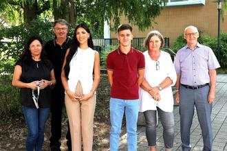 Die neue Auszubildende Berfin Olcay (3.v.l.) und Jahrespraktikant David Rolle (4.v.l.) wurden von (vlnr) Ausbildungsleiterin Bianca Mantik, Bürgermeister Manfred Ockel, der Personalratsvorsitzenden Petra Reinhardt und dem für Personalangelegenheiten zuständigen Ressortleiter Stefan Weikl begrüßt.