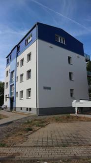 Das jüngste Vorzeigeobjekt der Nassauischen Heimstätte Wohnstadt (NHW) ist das Haus Nummer 5 in der Dreieichstraße. In einem strahlenden Blau erhebt sich das oberste Stockwerk, das vor kurzem auf das Bestandshaus aufgebracht wurde.