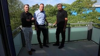 v.l. Robert Lotz, Tobias Bundschuh (beide NHW) und Bürgermeister Manfred Ockel besichtigen die neuen Wohnungen.