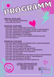 „Ich bin wieder hier, in meinem Revier, war nie wirklich weg, hab mich nur versteckt“, so wie Marius Müller-Westernhagen in seinem Song „Wieder hier“, dürften sich auch die Organisatoren und alle Besucherinnen und Besucher des Altstadtfestes fühlen. Ab dem heutigen Freitag, 9. September bis zum Sonntag, 11. September, begrüßt die Stadt Kelsterbach alle Gäste in den Gassen rund um den Marktplatz. Mit einem breiten Angebot an Speisen und Getränken aus aller Welt und einem bunten Programm auf der Bühne am Marktplatz sowie vielen weiteren kleinen Angeboten (wir berichteten in der letzten Ausgabe), bietet die 41. Auflage des Altstadtfestes alles, was das Herz begehrt. Bürgermeister Manfred Ockel eröffnet das Fest am Freitagabend, 19.45 Uhr auf der Bühne am Marktplatz. Bis zur Abschluss-Show, ebenfalls auf dem Marktplatz, am Sonntagabend, 22 Uhr, wird gefeiert, gelacht, geschlemmt und getanzt. Die Stadt Kelsterbach freut sich auf alle Gäste und eine tolle Zeit beim 41. Kelsterbacher Altstadtfest. Weitere Informationen zum Programm unter www.kelsterbach.de