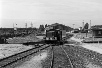 Einst gab es sie wirklich in Kelsterbach, die Drehscheibe. Gemeint ist nicht die ehemalige Gaststätte am Bahnhof, sondern die Drehscheibe für Schienenfahrzeuge. Diese war nicht, wie man vermuten könnte, ein Teil des ehemaligen Güterbahnhofs, der sich einst ganz in der Nähe befand, sondern war Teil des Glanzstoffschienennetzes. Verwendet wurde die Drehscheibe, um die werkseigenen Lokomotiven auf die „richtige“ Spur zu bringen, die die Güterwagons zu den jeweiligen Werkshallen transportierten. Die Drehscheibe und der Lokschuppen befanden sich im hinteren Teil des Werksgeländes. Auf dem Bild aus dem Jahr 1955, das die Scheibe zeigt, ist rechts im Hintergrund die noch vorhandene Trafoturmstation zu sehen. Allerdings überlebte die Drehscheibe nicht all zu lange und wurde Anfang der 1960er Jahre abgebaut. Ob es sich bei der Drehschreibe indess wirklich um den Namenspatron der ehemaligen und gleichnamigen Kneipe handelte, ist aber ungewiss. (Text/Bilder: Schönstein/Siebart)