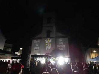 Kurz vor 22 Uhr war dann das große Finale angesagt. Dieses hatte die Verantwortlichen vor einige Herausforderungen gestellt. Schließlich sollte dem Publikum ein schöner Ersatz für das Feuerwerk, das aufgrund der Dürre in diesem Sommer nicht stattfinden konnte, geboten werden. Nach knapp zehn Minuten war klar: Die Mission ist geglückt! Mit einer Illumination der Fassade der St. Martinskirche wurde zu den Klängen von Peter Schillings „Major Tom“ und Frank Sinatras „Fly me to the Moon“ eine schöne Reise zum Mond geboten. Neben den auf die Kirche projizierten Bildern gab es dabei noch stimmungsvolle Zusatzeffekte, wie etwa Feuerfontänen und Rauchschwaden beim Zünden der Raketentriebwerke. So konnte das Altstadtfest auch 2022 trotz fehlendem Feuerwerk standesgemäß mit einem „Bang!“ enden - und mit dem von Vorfreude auf das 42. Altstadtfest im nächsten Jahr erfüllten Abschiedsgruß: „Danke für Euren Besuch. Bis zum nächsten Jahr!“