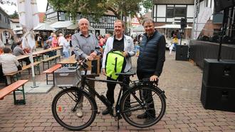 Drei, die sich freuen: Peter Beichert belegte den dritten Platz in der Einzelwertung beim Stadtradeln und bekam von Roland Rücker und Bürgermeister Manfred Ockel seine Preise überreicht.